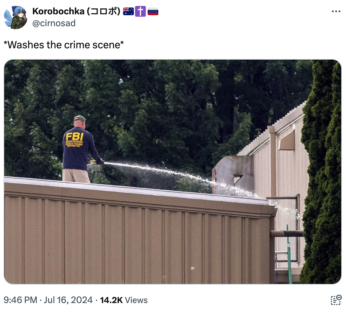 Maybe this particular agent was ordered to wash the shooter’s blood off the roof.