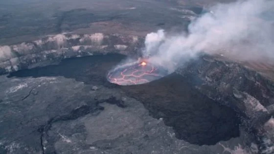 A massive lava lake that formed in the belly of the Kilauea volcano in Hawaii after it erupted in 2018. This lava lake is now “being monitored” for a possible eruption.