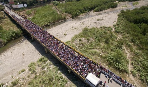 Thousands of Venezuelans are attempting to flee the socialist dystopia their nation has become. They are attempting to make it to Colombia. In a desperate bid to escape the hunger and soaring crime rate caused by the spiraling economic crisis, fueled by socialist policies, incredible pictures have surfaced showing the mass exodus of refugees crossing the Simon Bolivar international bridge trying to flee the ongoing political crisis threatening to engulf Venezuela.